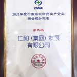 仁和集團榮獲2021年度中國非處方藥生產企業綜合統計排名第九名