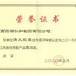 清火膠囊2019年度江西省優(yōu)秀新產(chǎn)品證書