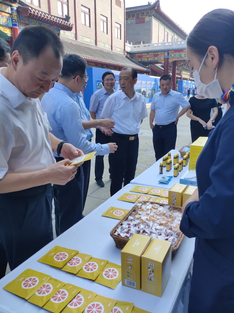 在現(xiàn)場(chǎng)主通道內(nèi)的仁和集團(tuán)展位前,集團(tuán)董事張威向于秀明書(shū)記詳細(xì)匯報(bào)了中藥經(jīng)典名方產(chǎn)業(yè)升級(jí)項(xiàng)目建設(shè)進(jìn)度及企業(yè)當(dāng)前工業(yè)生產(chǎn)、產(chǎn)量增長(zhǎng)等情況,重點(diǎn)介紹了仁和大健康產(chǎn)業(yè)藍(lán)圖規(guī)劃及重點(diǎn)品種的研發(fā)情況。于秀明聽(tīng)取后表示肯定,耐心詢問(wèn)仁和大健康產(chǎn)品的成分功效,并興致勃勃地進(jìn)行品嘗。他希望仁和集團(tuán)立足千年藥都樟樹(shù),堅(jiān)守中醫(yī)藥發(fā)展使命初心,守正創(chuàng)新,做大做強(qiáng),做精做細(xì),不斷研發(fā)更多有中醫(yī)藥特色及科技水平的健康產(chǎn)品,持續(xù)增強(qiáng)企業(yè)核心競(jìng)爭(zhēng)力,為打造藥都樟樹(shù)振興發(fā)展新樣板作出新貢獻(xiàn)。