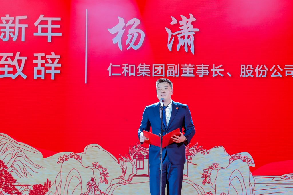 晚會伊始,楊瀟副董事長登臺致新年賀辭,他代表集團董事會向一直以來以來關(guān)懷、支持仁和事業(yè)發(fā)展的樟樹市委、市政府及各職能部門表示感謝,向如愿回家的市場營銷將士表示歡迎,向全體員工以及員工家屬們表示美好祝愿。楊瀟總簡要回顧了集團2023年取得的成績,勉勵大家2024 年同心協(xié)力,以嶄新的精神風貌和昂揚的斗志,迎接仁和事業(yè)發(fā)展新征程。