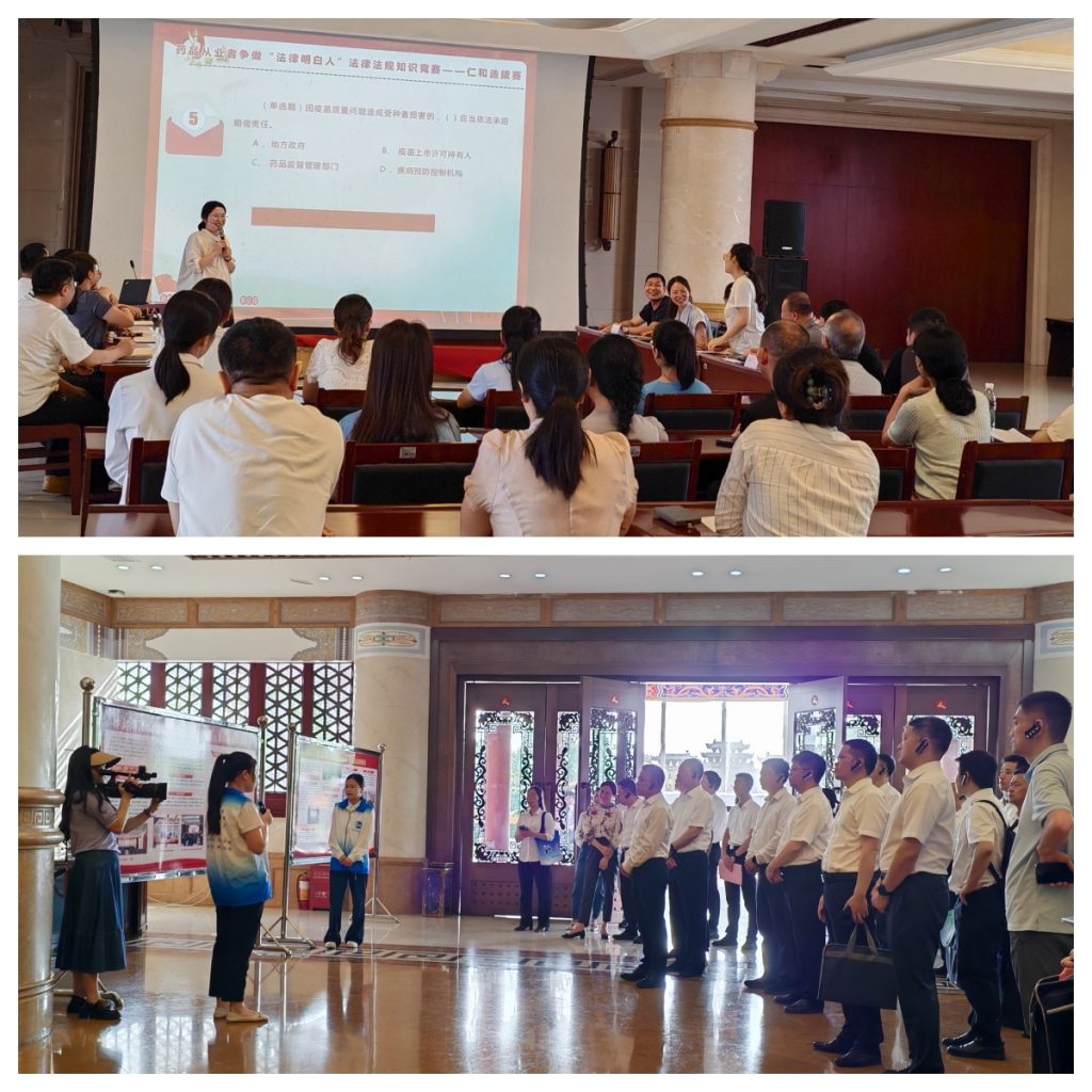 為積極回應(yīng)民營企業(yè)進入新發(fā)展階段的法治新需求、新期待,5月9日,2025年江西省“法治贛商行”專項普法暨“百場公益普法基層行”進企業(yè)集中宣傳活動在樟樹市“仁和藥都里”舉行啟動儀式。此次活動由江西省司法廳、江西省工商業(yè)聯(lián)合會、江西省律師協(xié)會主辦,相關(guān)職能部門領(lǐng)導(dǎo)、企業(yè)代表參加活動。啟動儀式結(jié)束后,參加活動的領(lǐng)導(dǎo)和企業(yè)代表一同參觀了仁和863科技園,聽取了仁和關(guān)于開展藥品從業(yè)者爭做“法律明白人”相關(guān)情況的介紹,并觀看了市司法局組織的爭做“法律明白人”知識競賽——仁和選拔賽賽況。