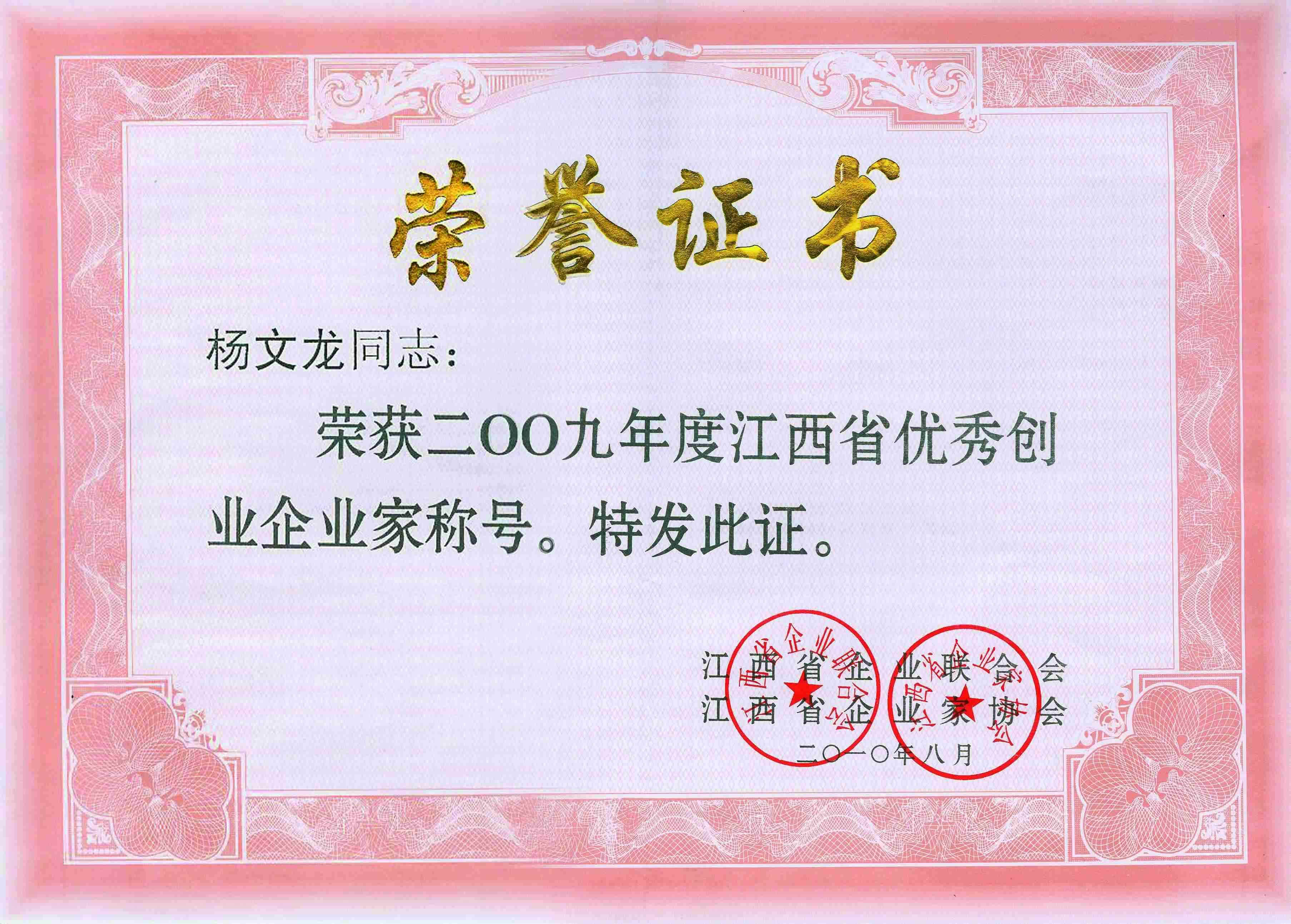 2009年度江西省優(yōu)秀創(chuàng)業(yè)企業(yè)家稱號(hào) 發(fā)布時(shí)間: 2019年12月18日 16:26:50 閱讀量: 11,204 下一篇:改革開(kāi)放30年江西省十大杰出建設(shè)者上一篇:2009年度優(yōu)秀企業(yè)家